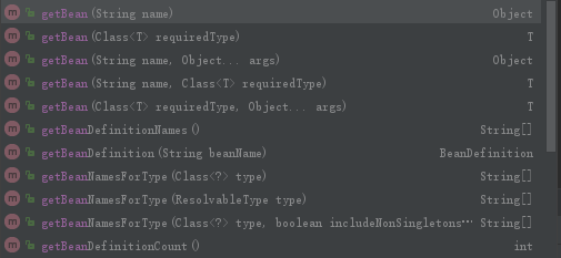 创建IOC容器并且获取后,与getBean相关的方法: