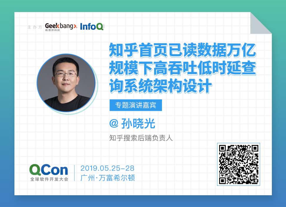 5 月 25-28 日,QCon 全球软件开发大会广州站,孙晓光老师将会现场进行【 知乎首页已读数据万亿规模下高吞吐低时延查询系统架构设计 】相关内容的分享,通过深度讲解知乎关于万亿级数据规模的高吞吐低时延的相关实践,以期为现场观众开拓有关 高可用性能架构 问题的另一种思路。