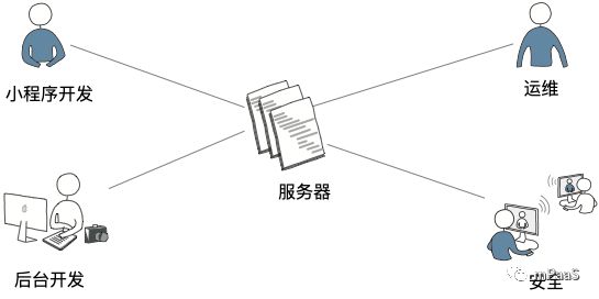 在上述模式中,我们一个小程序需要 3-4 个角色的参与才能确保我们的小程序能持续稳定的服务。 这对小规模的小程序或者孵化阶段的小程序来说人员投入是非常大的。