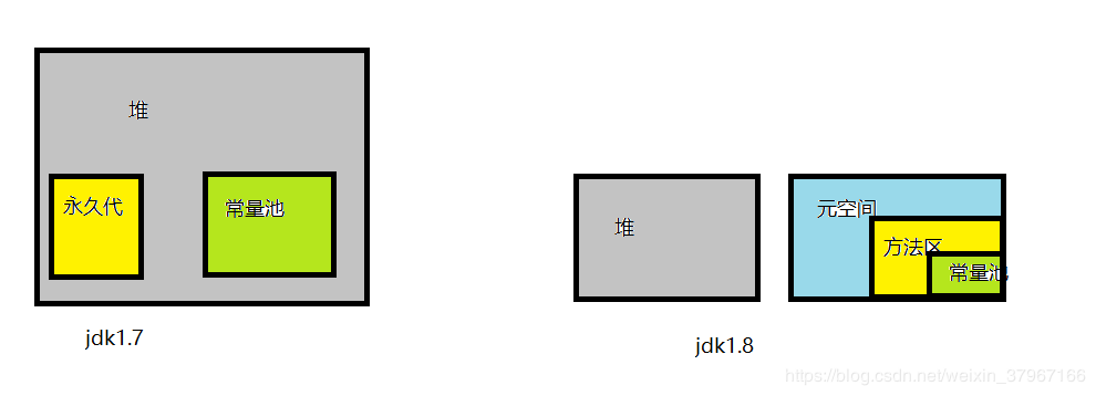 在jdk7之前,HotSpot虚拟机中将GC分代收集扩展到了方法区,使用永久代来实现了方法区。这个区域的内存回收目标主要是针对常量池的回收和对类型的卸载,但是在之后的HotSpot虚拟机实现中,逐渐开始将方法区从永久代移除。jdk7中已经将运行时常量池从永久代移除,在Java堆(Heap)中开辟了一块区域存放运行时常量池。而在jdk8中,已经彻底没有了永久代,将方法区直接放在一个与堆不相连的本地内存区域,这个区域叫元空间。