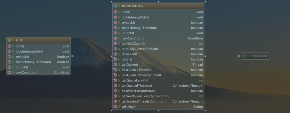 ReentrantLock 是 java.util.concurrent.locks 包下一个可重入的默认是非公平的锁, ReentrantLock 类是 Lock 接口的一个使用很频繁的实现类,类结构如下图: