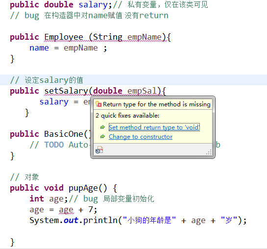 * BasicOne age 没有初始化,所以在编译是会出现报错*/