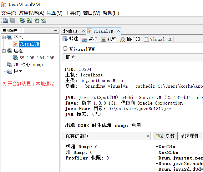 监视:显示CPU,堆/metaspace,类加载信息,线程信息
