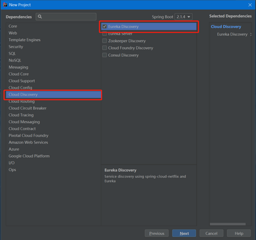 创建步骤与 创建Spring Cloud Eureka 基本相同,不同的是选取服务时按照下图选择