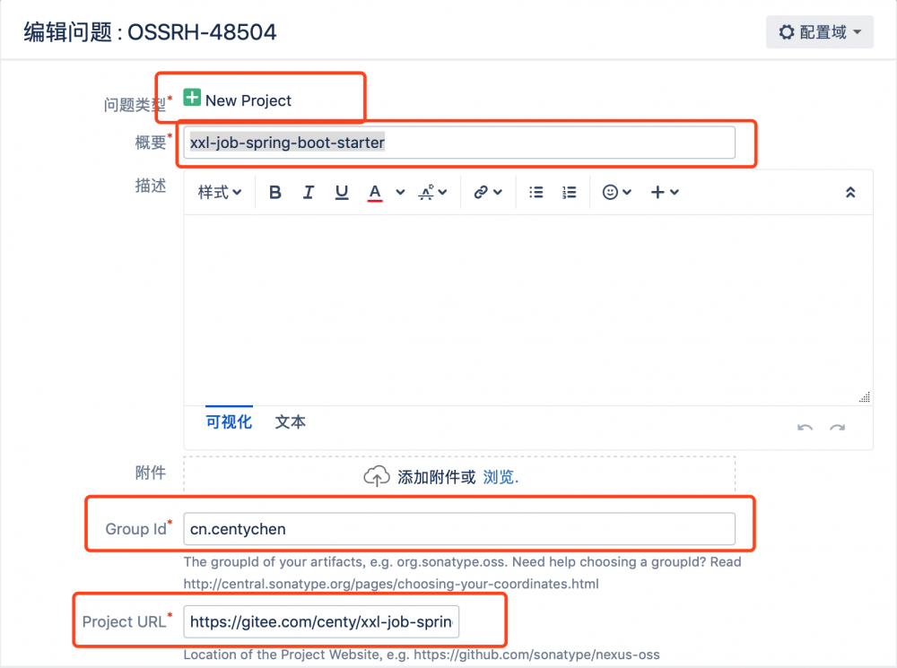 注册一个 sonatype.org 帐号,登陆并提交一个issue,没错,就是提交一个issue,具体可参考如下: