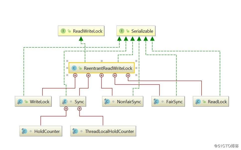 我们先来看一张ReentrantReadWriteLock类图