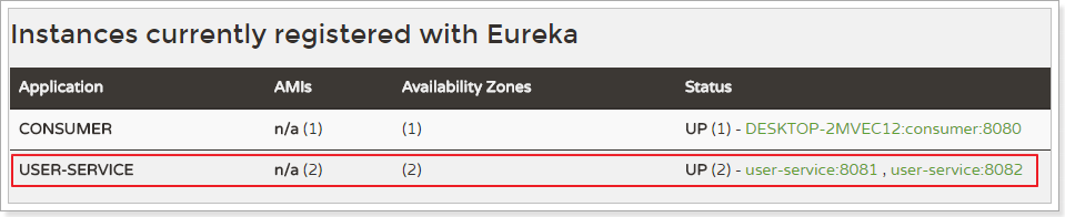 首先我们启动两个user-service实例,一个8081,一个8082。