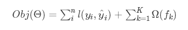 F对应了所有regression tree的集合。我们设计的目标函数也需要遵循前面的主要原则,包含两部分