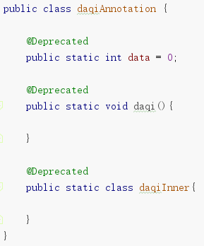 将方法,类或字段标记为为@Deprecated注释时,编译器都会将被标记@Deprecated注释的方法,类或字段被快捷使用时,用删除线进行修饰。