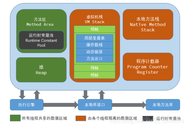 Jvm把Java程序运行时的内存划分为不同的数据区域,如图所示: