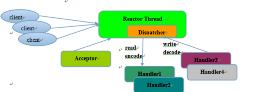 客户端发送请求之后Acceptor先进行接收。解析客户端到底是个说什么事件,客户端关注了什么事件服务器端是可以看到的,如果是读事件转发给 “Handler读”,如果是写事件转发给 ” Handler 写”。任何请求都接触通过分发器Dispatch确定对应事件的Handler。