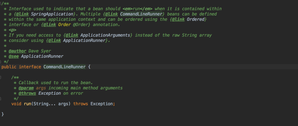 Interface used to indicate that a bean should run when it is contained within a SpringApplication. Multiple CommandLineRunner beans can be defined within the same application context and can be ordered using the Ordered interface or Order @Order annotation.