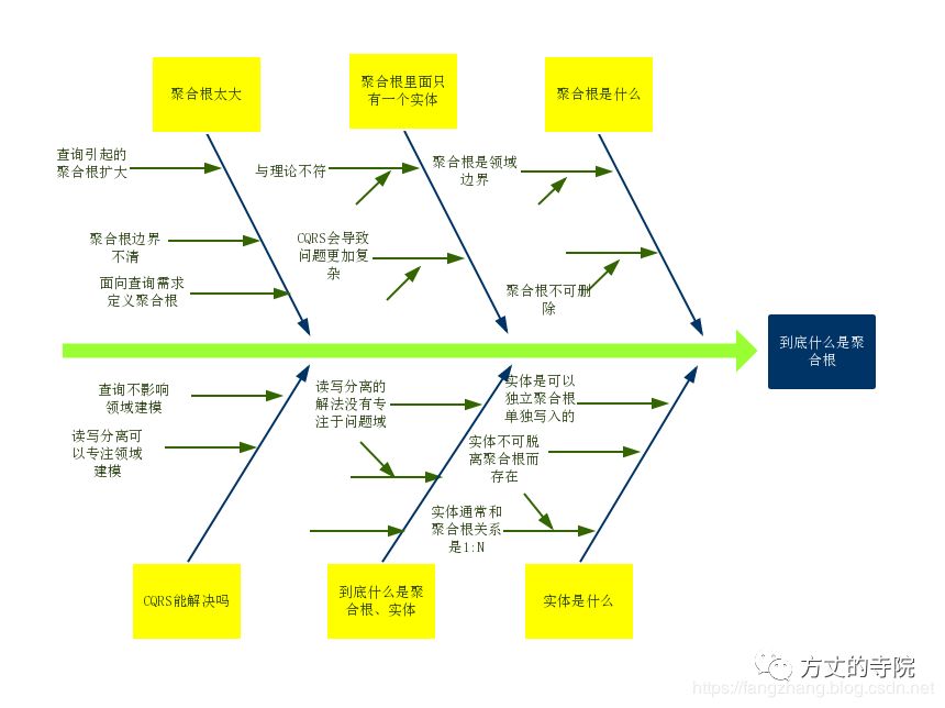 于是我以聚合根定义作为引子,结合组内在实践DDD过程中,聚合根随着业务查询复杂而导致聚合根不断膨胀的问题,提出借鉴CQRS读写分离的理念,来解这个问题。 详见DDD-CQRS能解聚合根的问题吗引发了大家对领域模型的重新思考和激励讨论。历经3小时得出了一些结论,达成了共识。