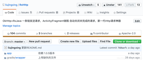 RxHttp 截止本文发表已经推广了4个礼拜,目前已经有了141个star,如下: