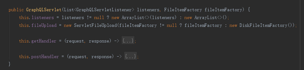 通过graphql-spring-boot-autoconfigure,SpringBoot会自动扫描到GraphQLServlet的相关配置信息,在GraphQLServlet的构造函数中初始化了getHandler和postHandler分别用于处理get和post请求