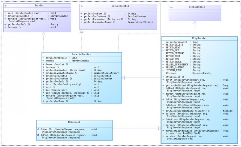 下图为Servlet UML关系图。