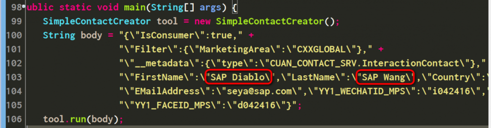 "/"FirstName/":/"SAP Diablo/",/"LastName/":/"SAP Wang/",/"Country/":/"CN/"," +