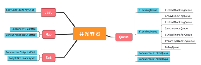 并发容器虽然数量非常多,但依然是前面我们提到的四大类:List、Map、Set 和 Queue。