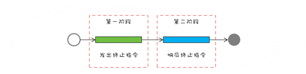 第一阶段线程T1向线程T2 发送终止指令 ,第二阶段是线程T2 响应终止指令
