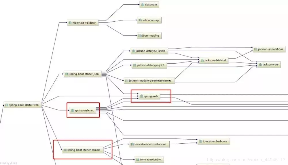 如上图所示,现在只要依赖spring-boot-starter-web启动器包,它包含所有 web 开发所有的依赖,就能拥有 Spring Web 的能力,极大简少了 maven 对依赖的配置。