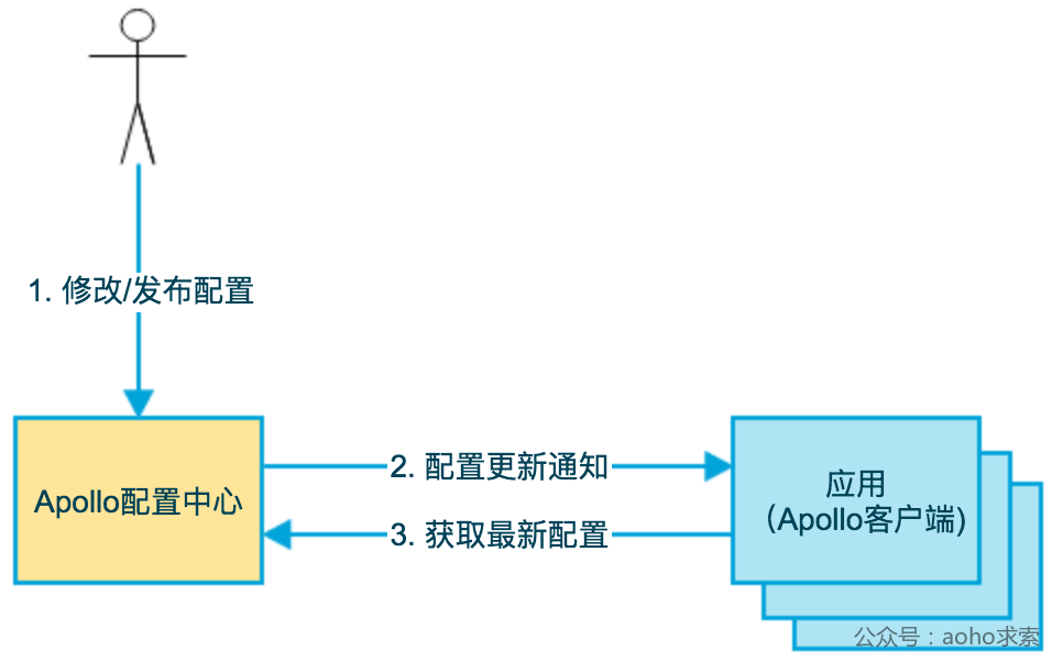 首先用户在配置中心对配置进行修改并发布;配置中心通知Apollo客户端有配置更新;Apollo客户端从配置中心拉取最新的配置、更新本地配置并通知到应用。
