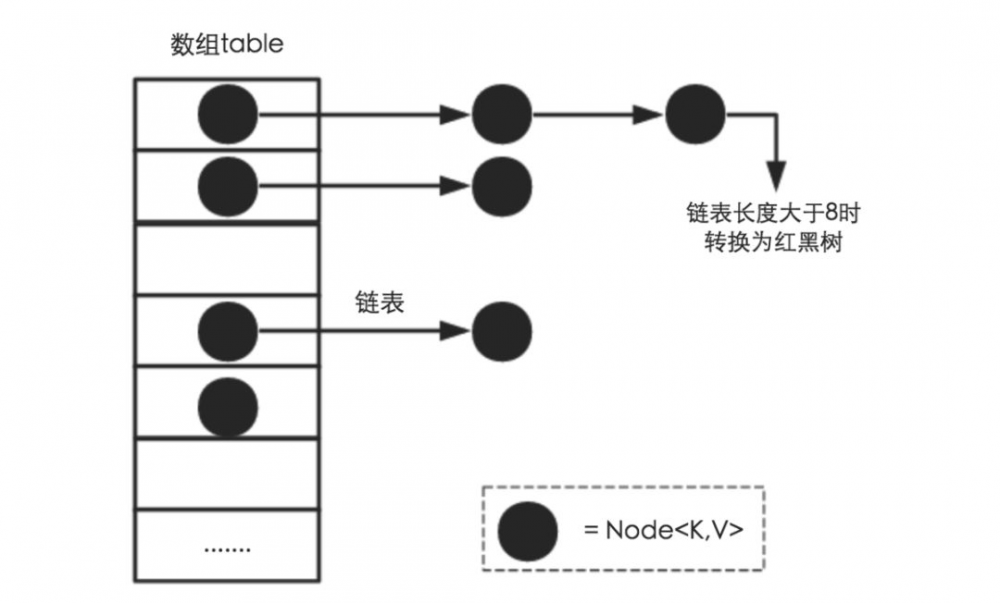 我解释下关于碰撞冲的循环。 1.查看是否存在相同的key,存在相同的key跳出循环,覆盖key的value。 2.如果不存在相同的key,在链表末尾插入新的Node如果链表节点过长,转换为树。 3.如果链表节点过长,转换为树。