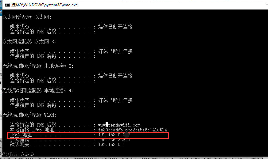 Win + R (快捷键),打开【运行】窗口,然后输入 cmd 回车,弹窗命令窗口,紧接着输入:ipconfig