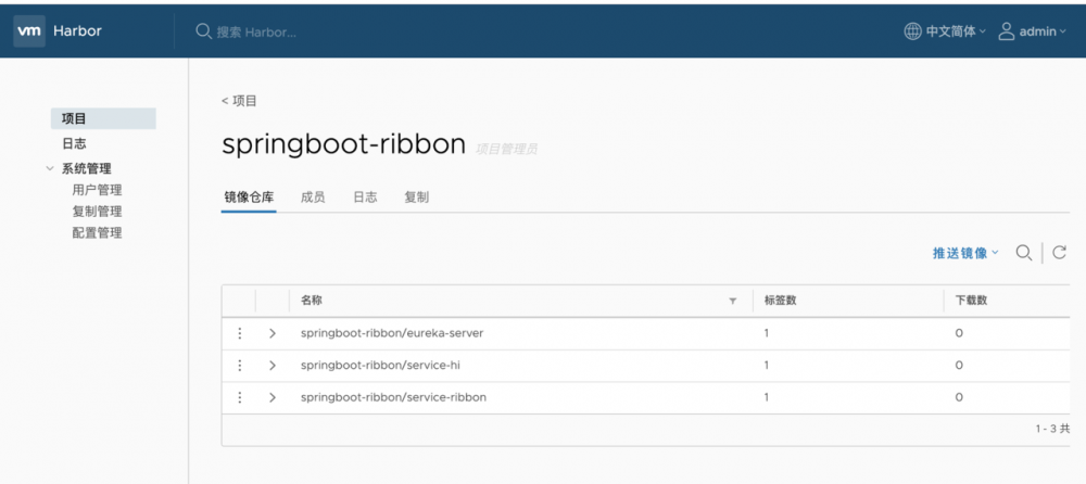 分别执行三个 build.sh 脚本,这样私有仓库就有三个项目的镜像了,如图: