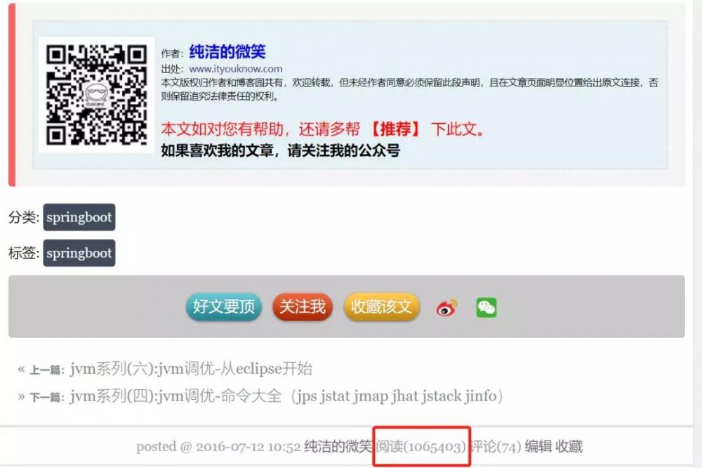 大家可能对这个阅读量没有概念,很多技术人的博客,建站很多年访问量才可以超过百万、或者千万这个级别。我这通过一篇文章就搞定百万阅读了,当然了这也是沾了 Spring Boot 这两年越来越火的原因。