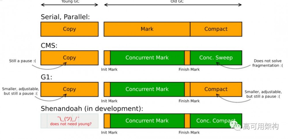 这里需要注意垃圾收集器在常规GC循环中的暂停阶段。