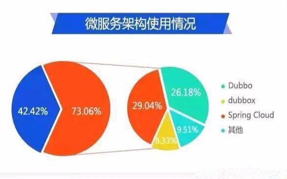 微服务架构主要有:Spring Cloud、 Dubbo、 Dubbox等,以 Dubbo占比最高,可达26%,微服务网关技术,使用springcloud-zuul的程序员占比最高。