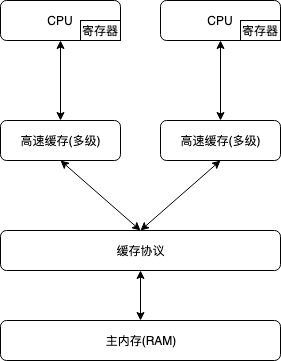 大家都知道计算机系统处理任务主要是靠处理器(CPU)来进行运算的,而运算中又会涉及到数据,数据在哪呢,数据自然是存储在计算机内存中,所以处理器在运算过程中不可避免的会涉及到与内存的读写交互,比如读取运算所需的数据,存储运算得到的数据结果等。而处理器的运算速度相比物理内存的读写速度要快得多,所以会出现处理器要等待内存数据读写结束后才能进行下一步的运算,因此为了提高计算机的运算速度,现在的计算机系统为处理器添加了一层读写速度尽量接近处理器的高速缓存来缓解内存与处理器之间的性能差异。这样在处理任务时将运算需要的数据复制到缓存中,运算结束后再将数据从缓存中同步写回到内存,这样处理器在运算时就不需要等待内存数据读写结束了。