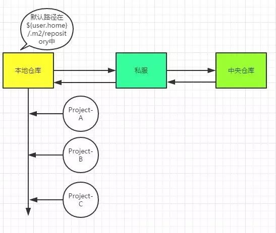 你要jar包,不可能每次都要联网去下载吧,多费劲,所以本地仓库就是相当于加了一层jar包缓存,先到这里来查。如果这里查不到,那么就去私服上找,如果私服也找不到,那么去中央仓库去找,找到jar后,会把jar的信息同步到私服和本地仓库中。