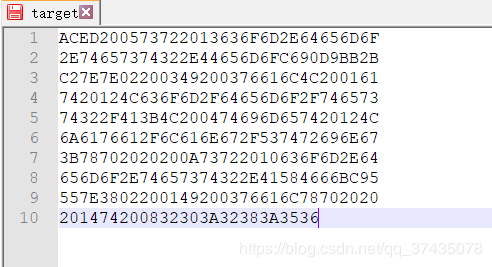 我们打开序列化生成的target文件,这里需要用二进制流的方式打开: