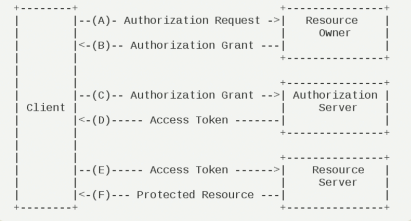 oauth生态设计的范围很大,可以说是一种解决方案,它有“第三方客户端(web服务,APP服务)”、“用户”、“认证服务器”、“资源服务器”等部分。认证流程如下图: