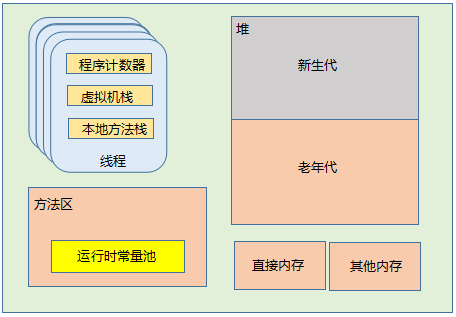 JVM的内存划分中,有部分区域是线程私有的,有部分是属于整个JVM进程, 有些区域会抛出OOM异常,有些则不会。