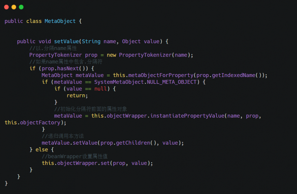 从数据库 rs 中拿到结果之后,会调用 MetaObject.setValue(String name, Object value) 来填充对象。