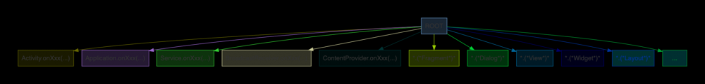 Application 的模板方法为起点的调用链路,详见: Application Entry Points Activity 的模板方法为起点的调用链路,详见: Activity Entry Points Service 的模板方法为起点的调用链路,说见: Service Entry Points BroadcastReceiver 的模板方法为起点的调用链路,详见: Receiver Entry Points ContentProvider 的模板方法为起点的调用链路,详见: Provider Entry Points Fragment Dialog View Widget Layout