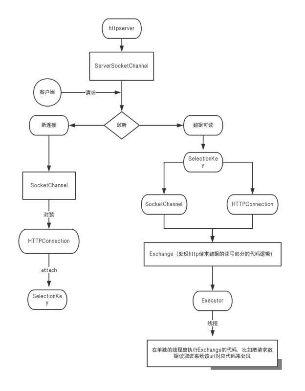 后来搜了下才发现,JDK自带了一个httpserver的实现,看了下代码,非常简洁,非常规范,一下子就让我搞懂了Java NIO是怎么实现高并发的了。