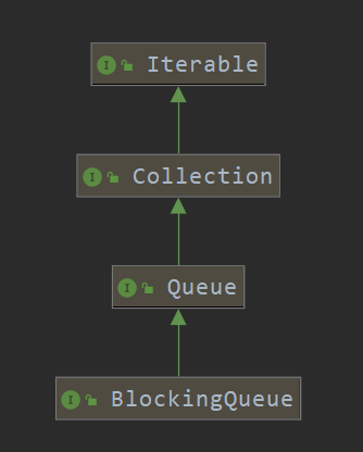 BlockingQueue,含义为阻塞队列,我们可以从类定义看出,其继承了Queue接口,所以可以当作队列来使用: