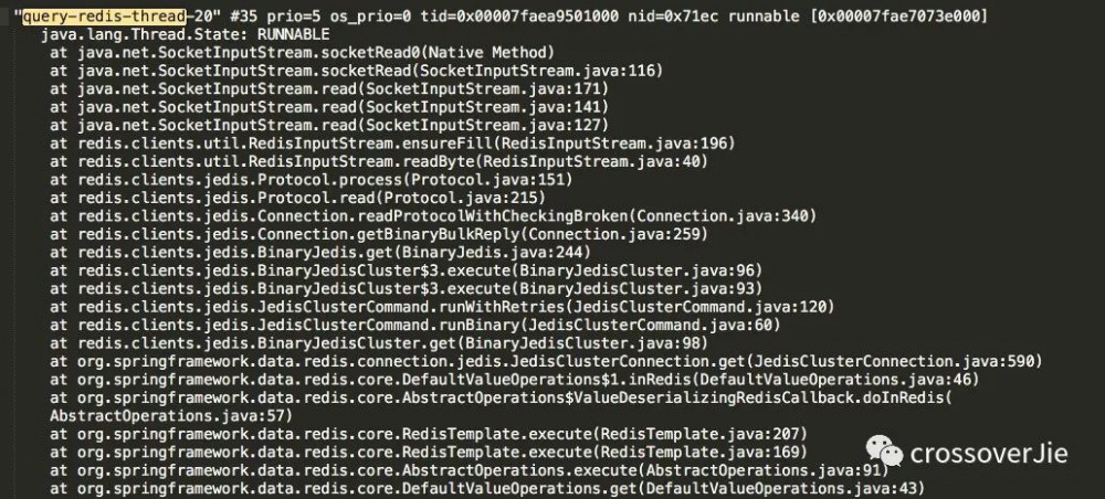 其实其他几个线程都和这里的堆栈类似,很明显的看出都是在做 Redis 连接。