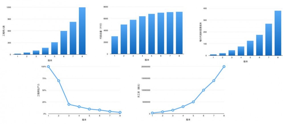 当我们只关注行为价值,不关注架构价值时,会发生什么事情?这是书中记录的一个真实案例,随着版本迭代,工程师团队的规模持续增长,但总代码行数却趋于稳定,相对应的,每行代码的变更成本升高、工程师的生产效率降低。从老板的视角,就是公司的成本增长迅猛,如果营收跟不上就要开始赔钱啦。