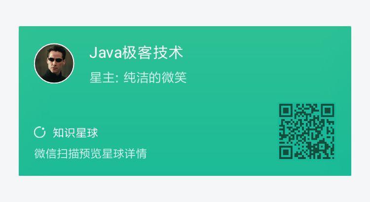 《Java 极客技术》由一群热爱 Java 的技术人组建,是一个专业学习 Java、讨论 Java 的私密基地。 该基地会长期分享面试技巧、设计模式、Java 疑难杂症解惑等。该基地由两大板块组成,其一就是 Java 极客技术公众号,其二就是 Java 极客技术知识星球。