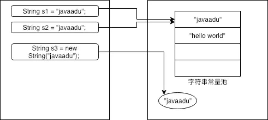 字符串对象在JVM中可能有两个存放的位置: 字符串常量池 或 堆内存 。