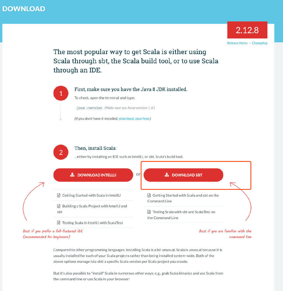 注意:下载 Scala 安装包之前,需要本机环境有 JDK 8 以上 才行。