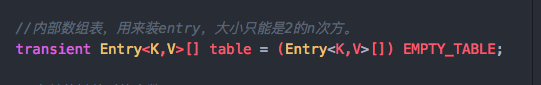 transient Entry<K,V>[] table = (Entry<K,V>[]) EMPTY_TABLE;