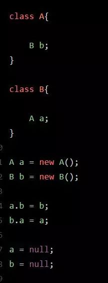 这里主要考察jvm如何判断一个对象是否可以被回收,是通过引用计数还是可达性分析,引用计数的方式会产生像上面代码一样的循环引用的问题,所以jvm没有采用这种方式。