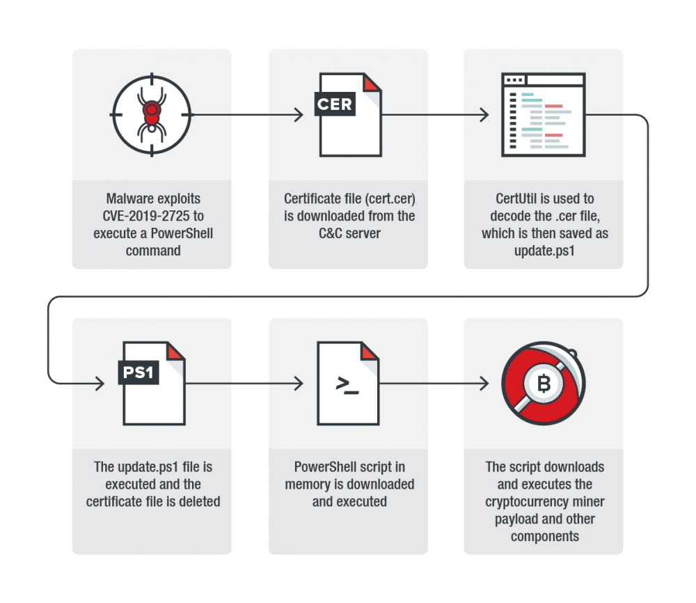 CVE-2019-2725是Oracle Weblogic的一个反序列化远程代码执行漏洞,于2019年4月披露,就在公告发布后不久,SANS ISC InfoSec论坛上就出现了研究报告称该漏洞被某些犯罪分子利用以安装加密货币挖矿机。趋势科技对报告反馈的活动进行了验证,同时发现一个有趣的地方——恶意软件将恶意代码隐藏在证书文件中作为混淆策略。