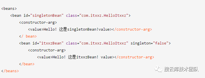 spring中的BeanFactory就是简单工厂模式的体现,根据传入一个唯一的标识来获得bean对象,但是否是在传入参数后创建还是传入参数前创建这个要根据具体情况来定。如下配置,就是在 HelloItxxz 类中创建一个 itxxzBean。