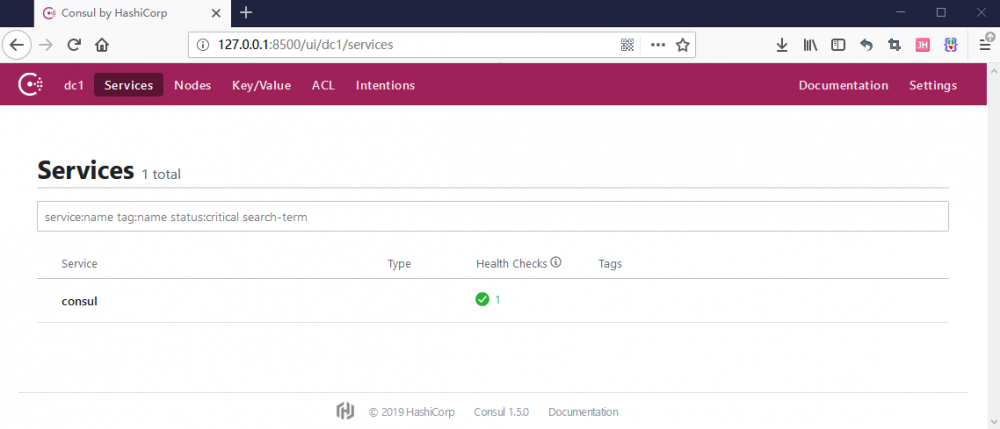 服务启动成功后访问地址: http://localhost:8500 ,看到如下界面说明服务启动成功